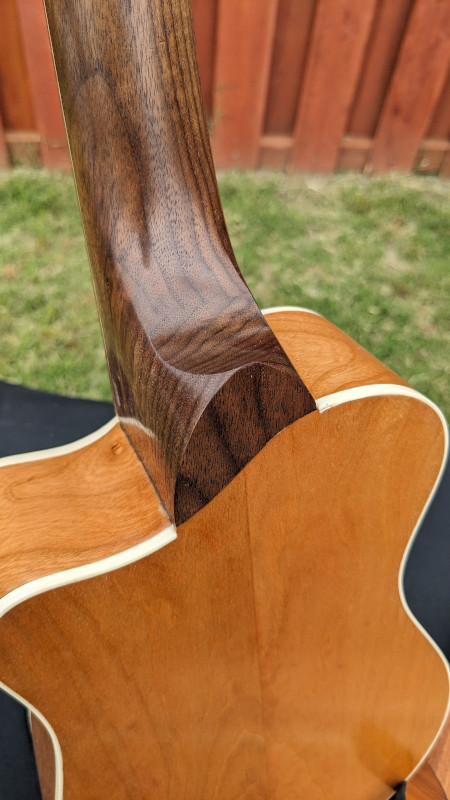 The completed instrument is beautiful, and sounds great. It has a bright, traditional sound, and that big, unbroken expanse of soundboard resonates clear and long. Below are some finished photos of this original GB build, as well as some of the 2024 build that sold for $1000 at the 2024 Switchfoot BroAm benefit auction.