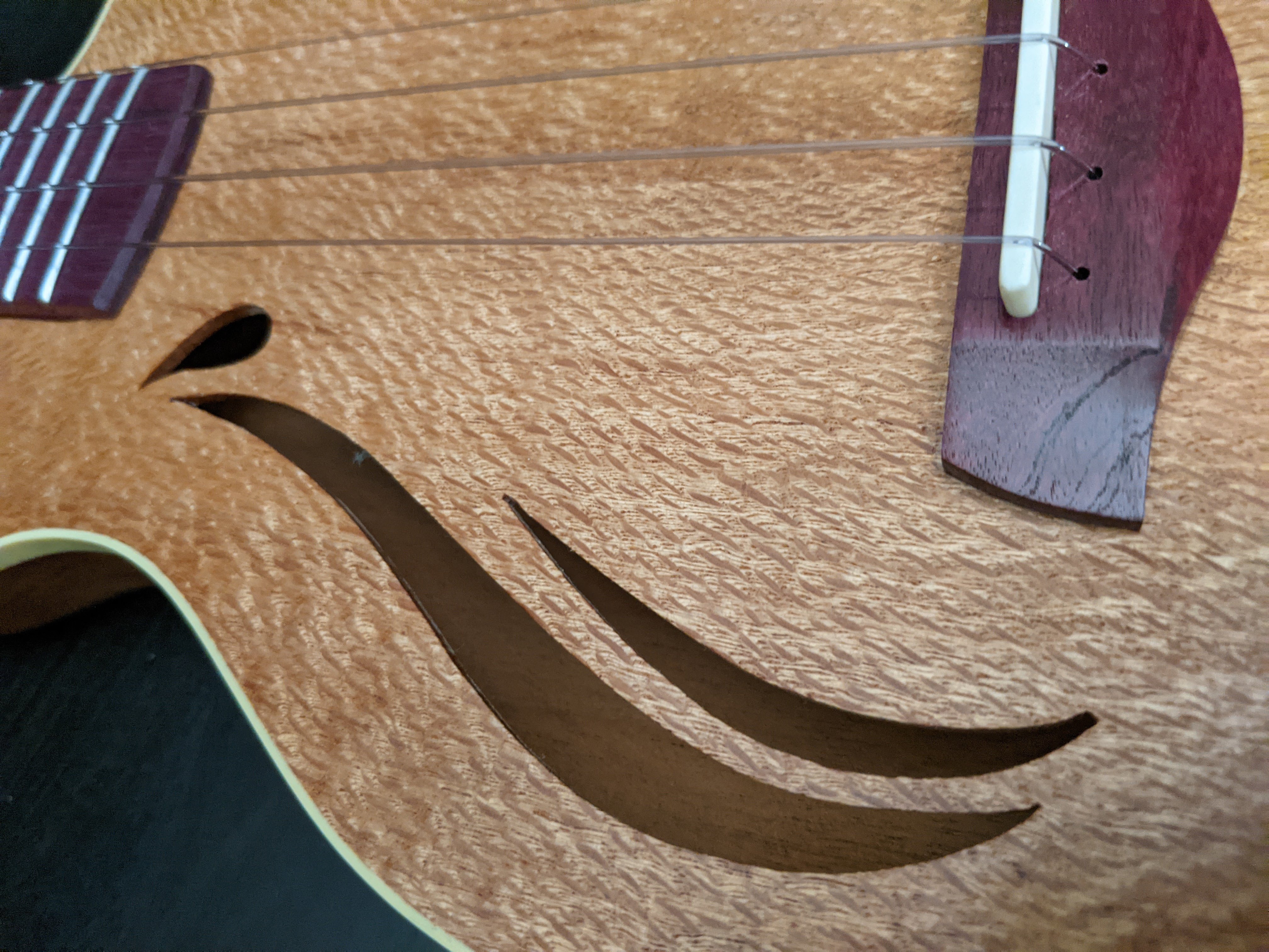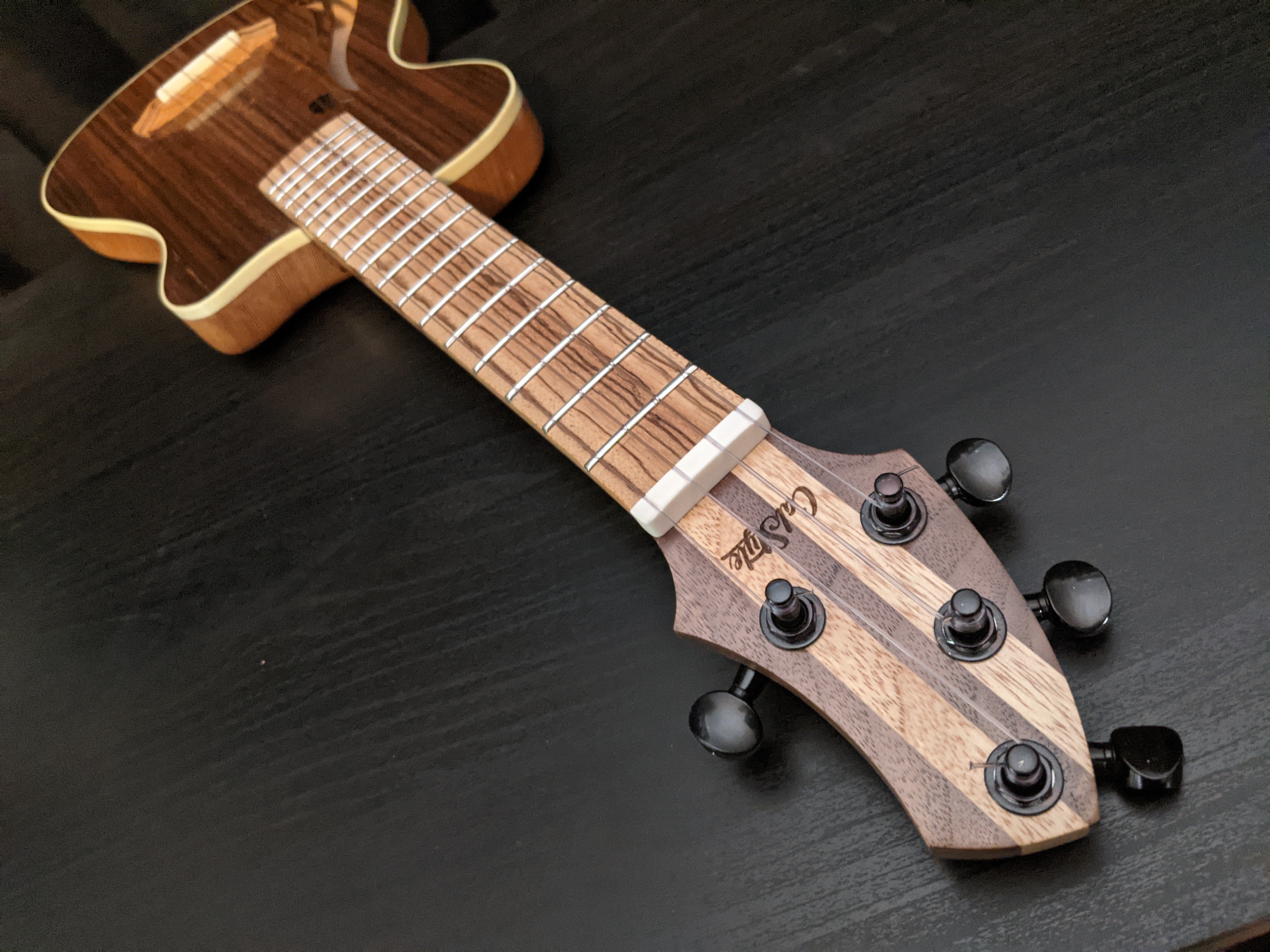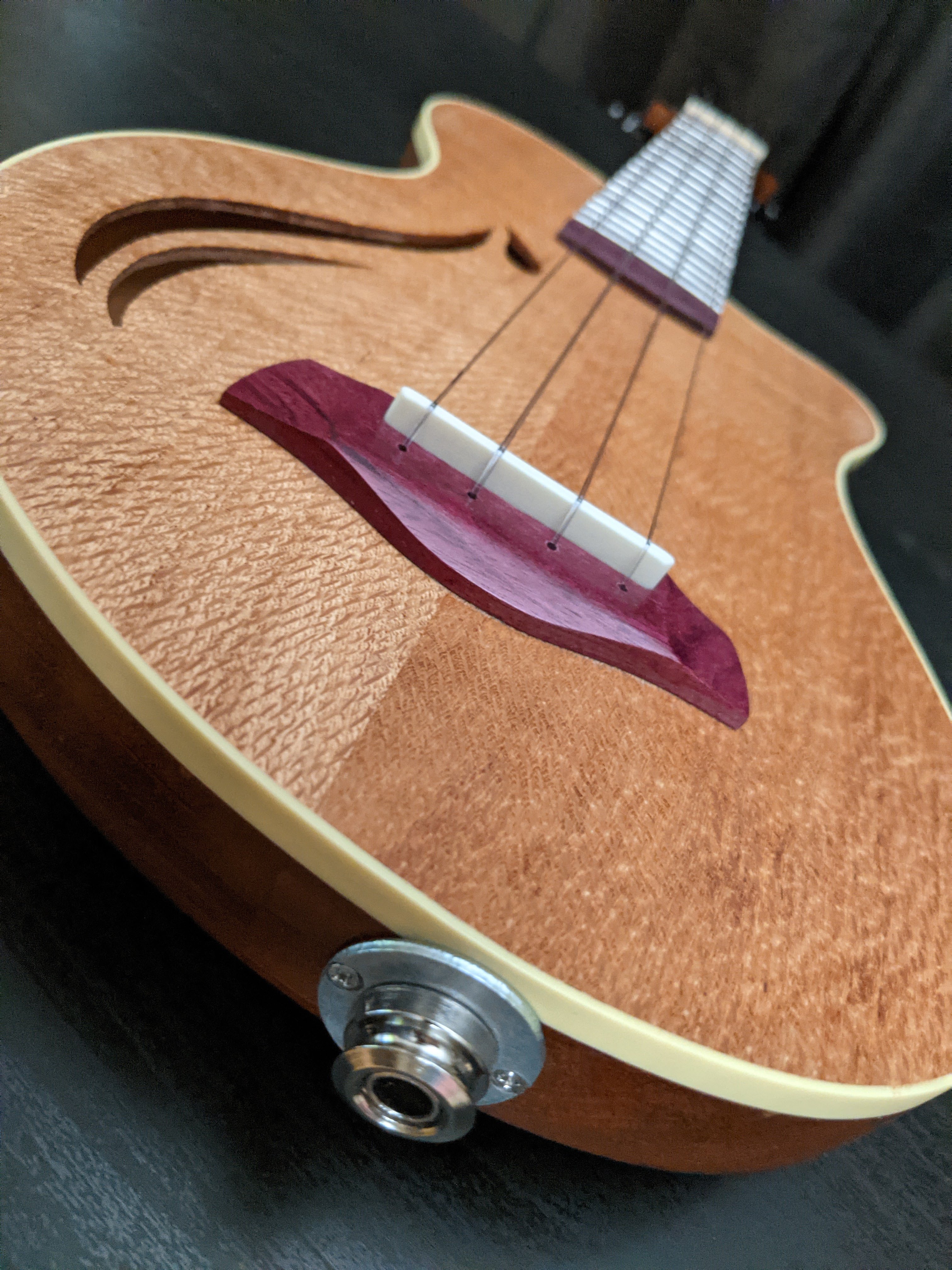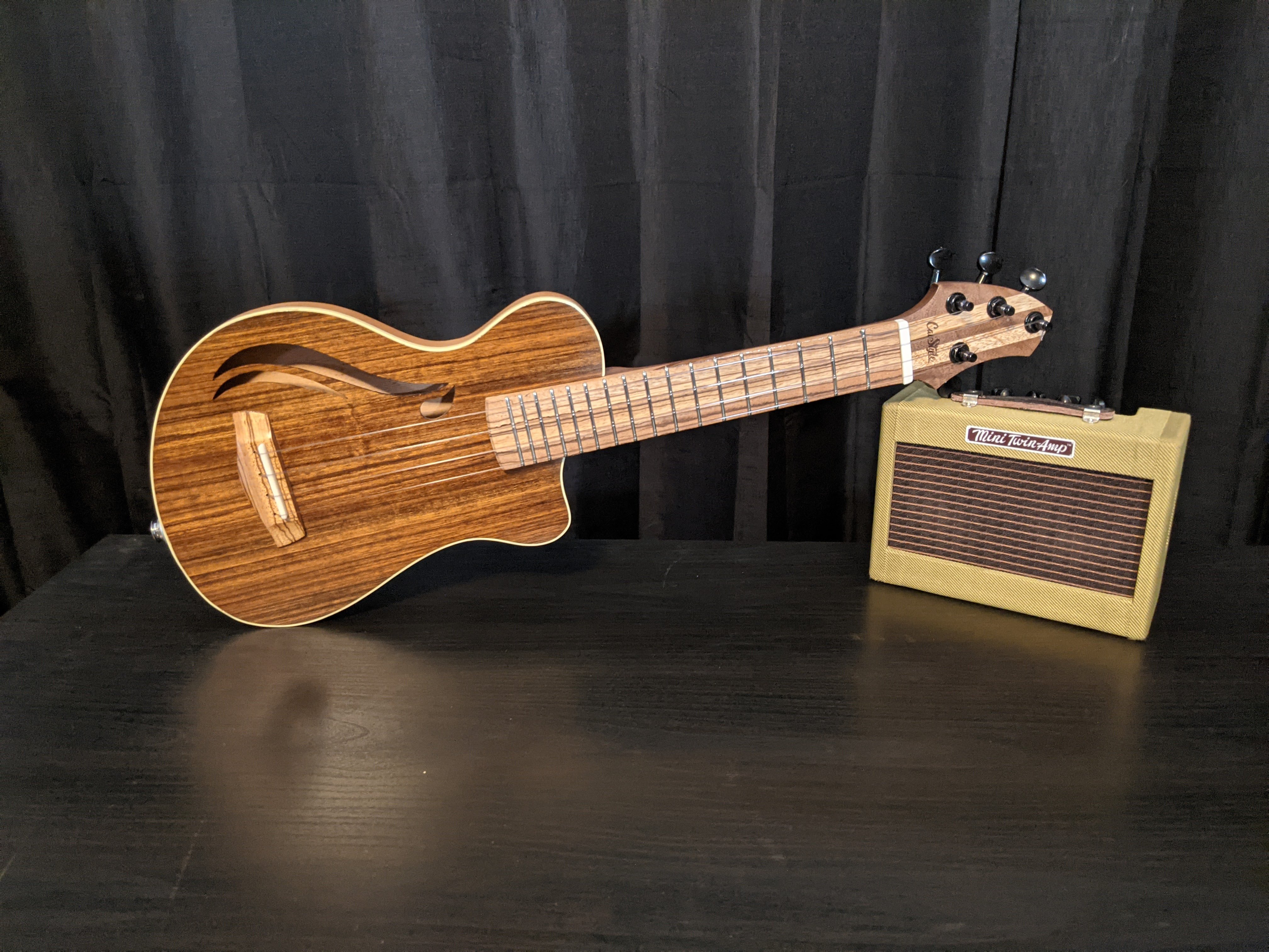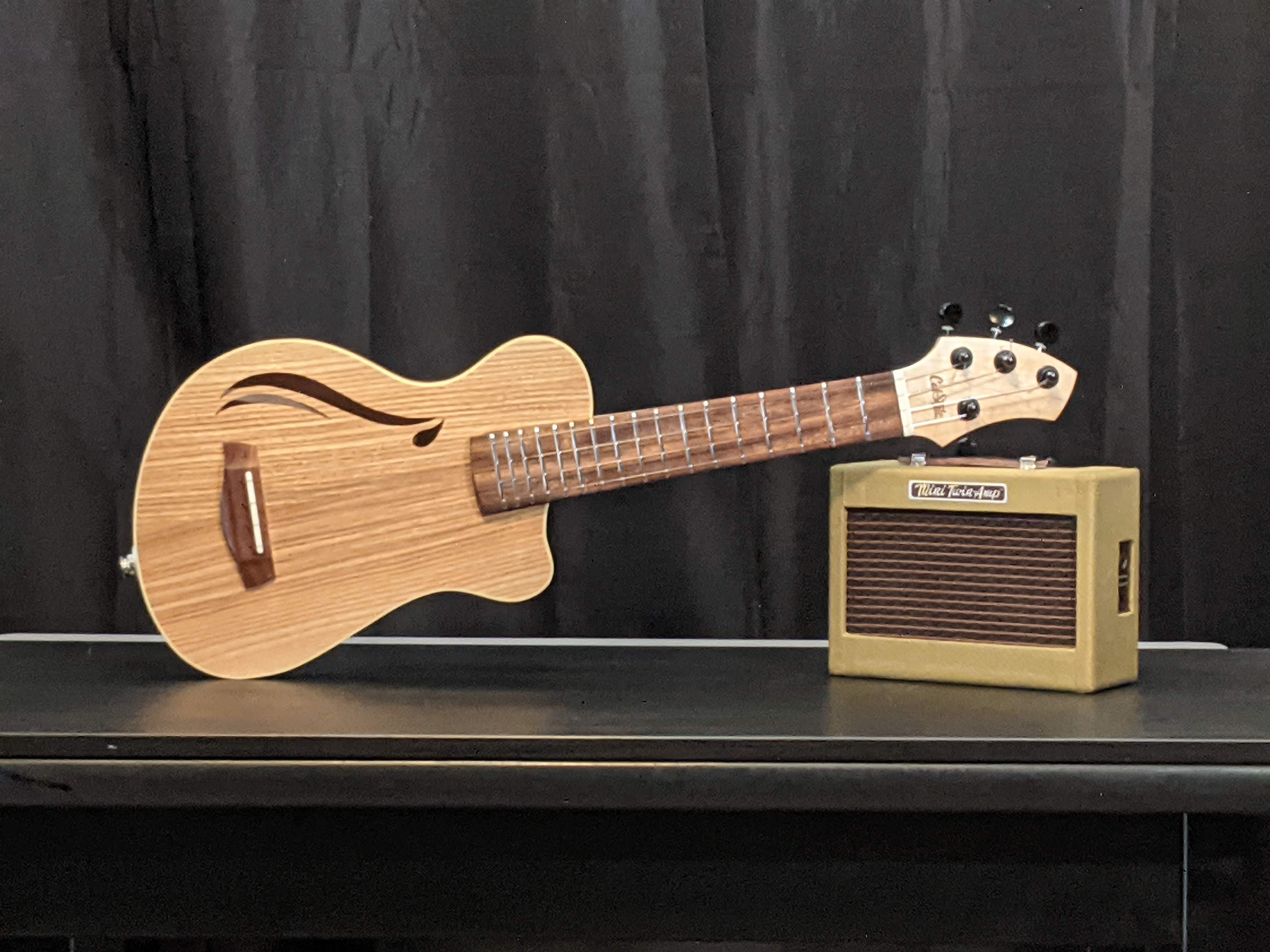 The Santa Cruz build really serves two purposes. These ukes are great instruments in their own right. While they don't resonate with the volume as a full-bodied acoustic ukulele, they do sound great as acoustic instruments, and are awesome in a small group where big sound isn't really necessary. But where they really shine is on stage. The acoustic pickups in these instruments are great, and when plugged in and given some moderate effects, like a little reverb, and maybe a touch of chorus, these little guys absolutely kill. The second purpose for this build was to serve as a proof of concept for the electracoustic form factor. These ukes turned out great, and the lessons I learned during the build transitioned right into the follow-up Whitney elecracoustic guitar build.
